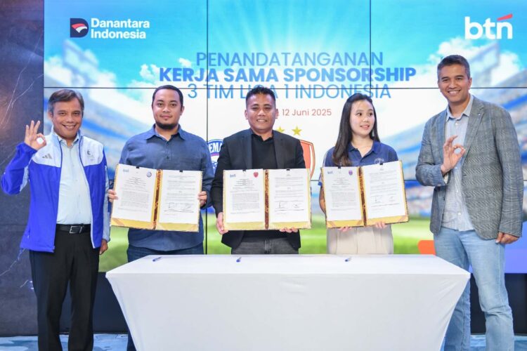 JAKARTA – PT Bank Tabungan Negara (Persero) Tbk (BTN) resmi menjadi sponsor bagi tiga klub sepakbola Liga 1 Nasional dalam rangka meningkatkan brand awareness Super App Bale by BTN serta pengembangan ekosistem bisnis perseroan. Penandatanganan kerja sama antara manajemen BTN dan tiga klub sepakbola tersebut, yakni Arema FC, Persita Tangerang, dan PSM Makassar dilaksanakan di Menara 1 BTN, Jakarta, pada Kamis, 12 Juni 2025.